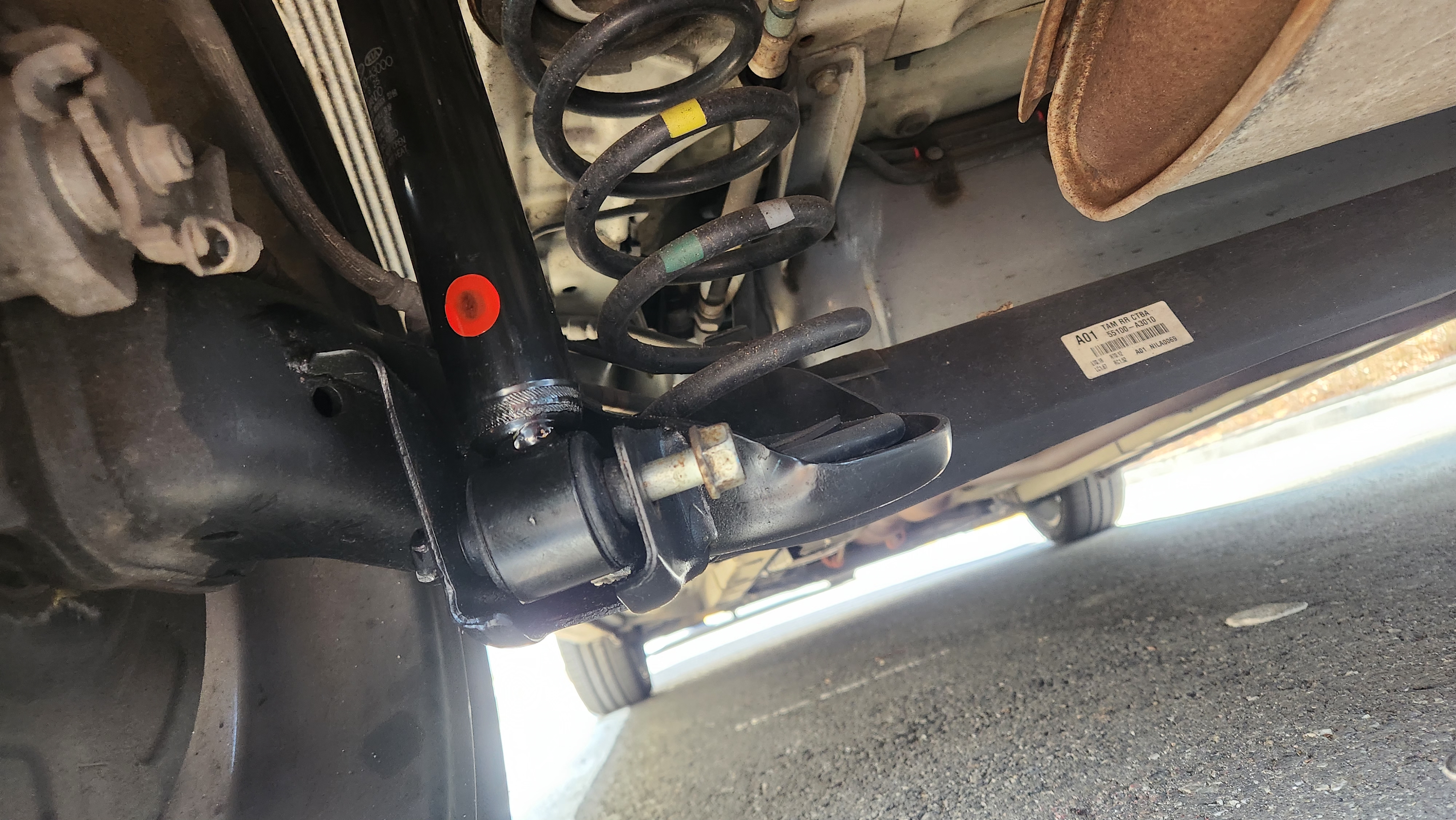 박스를 깔고 아래쪽 볼트를 풀어줍니다. 스프링 아래쪽 회색볼트입니다.