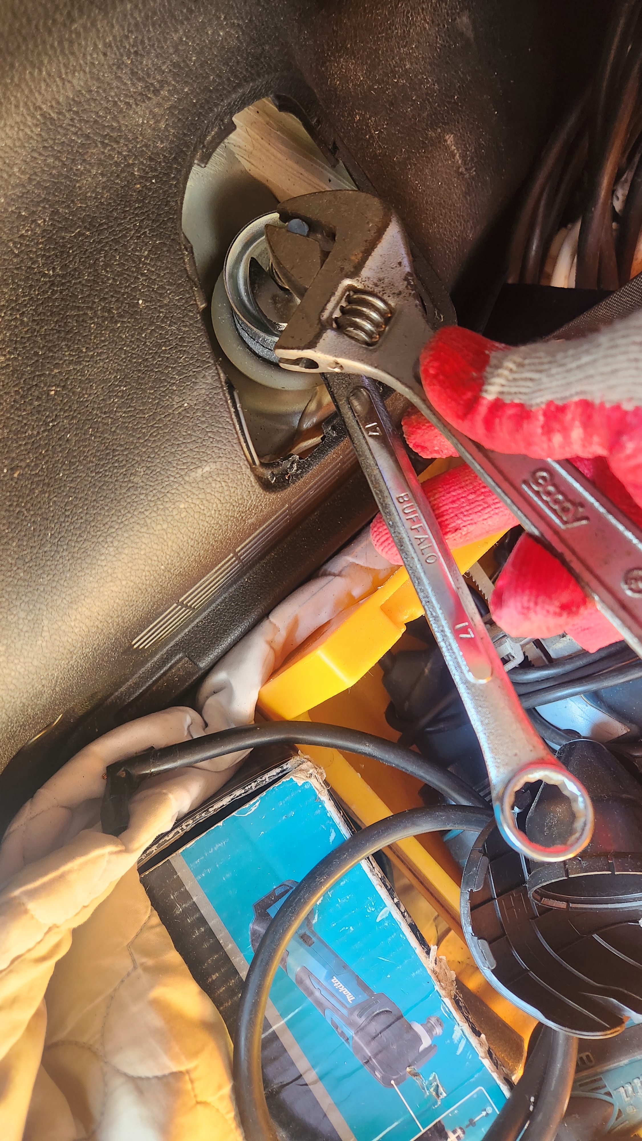 17mm는 너트 부분을 잡고 몽키는 위쪽 볼트 부분을 잡아줍니다.
