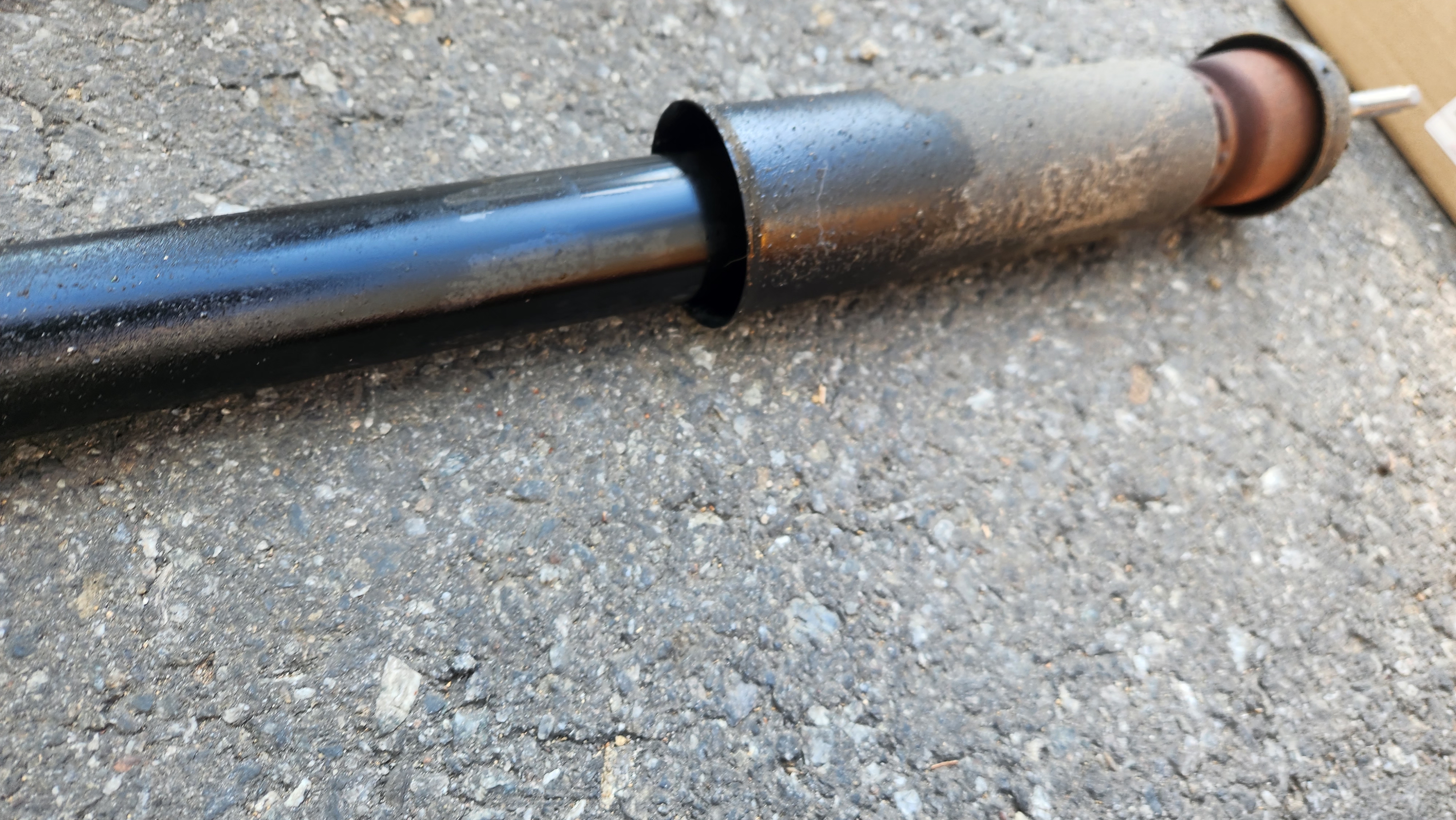 고품 쇼바입니다. 터져서 오일이 새어 나오고 있습니다.