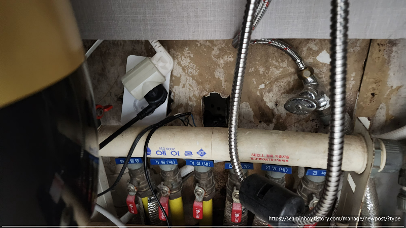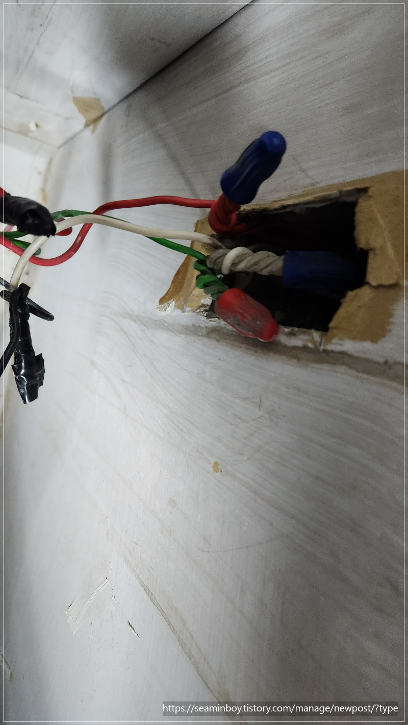 철거된 콘센트 자리에는 다시 똑같은 콘센트로 설치 시 똑같은 현상이 있을 수 있어 매입형 콘센트 대신 일반형 콘센트를 설치하였습니다.